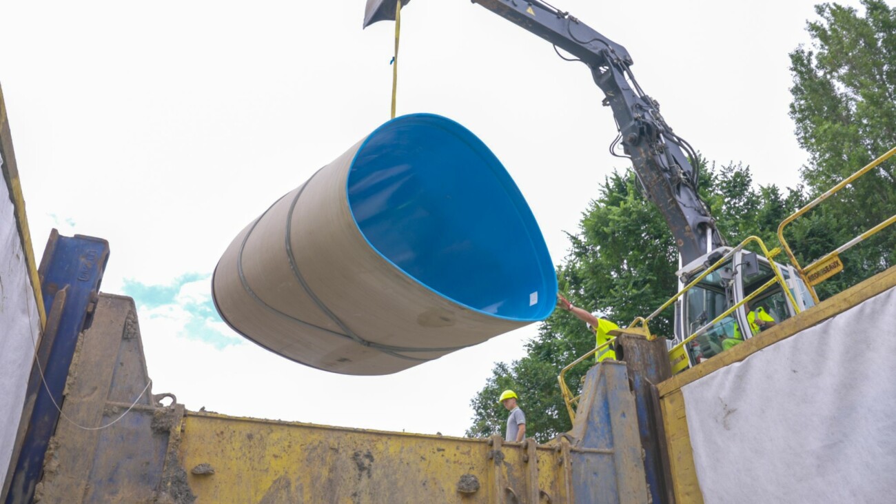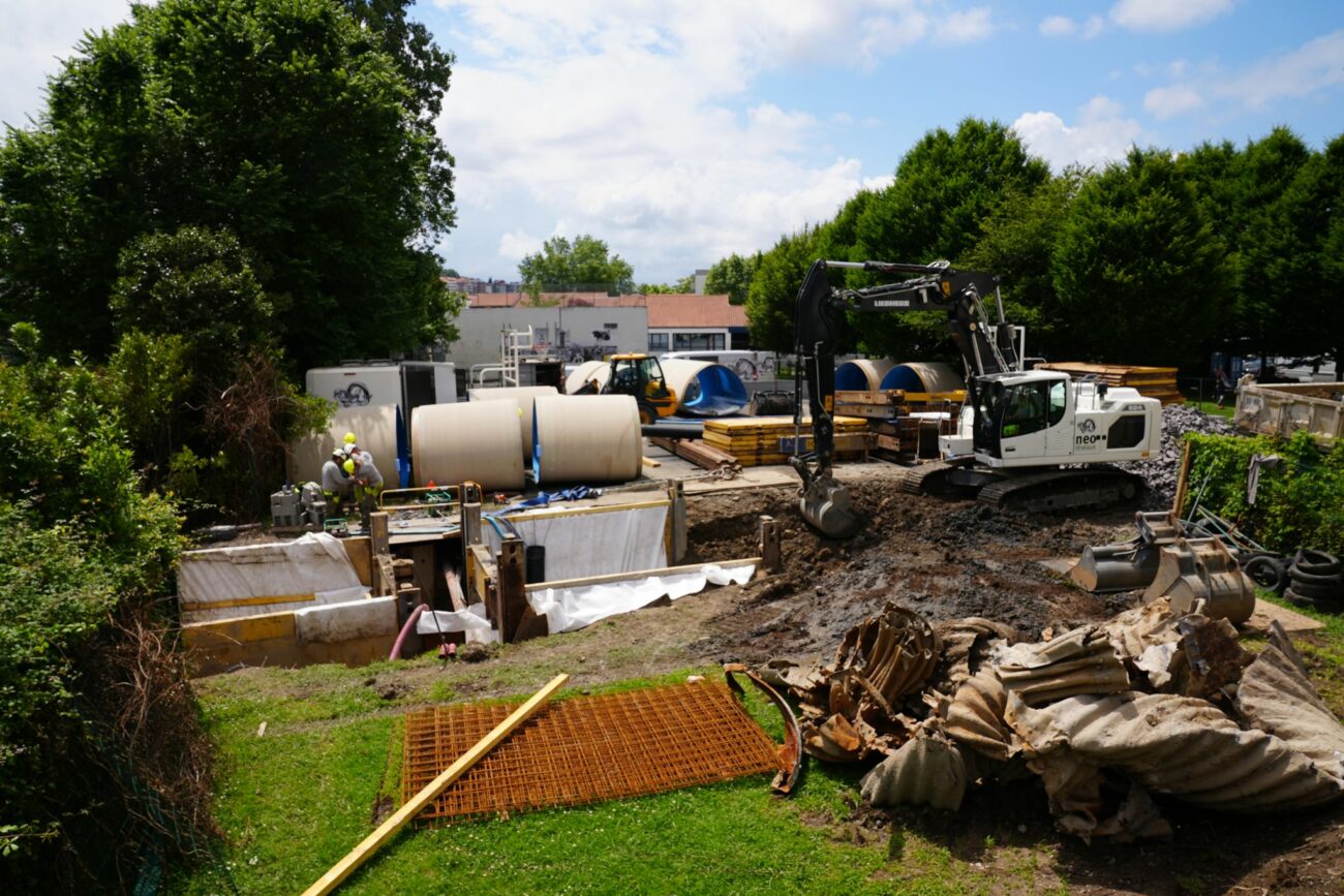 Neo Reseaux a mené des travaux de réhabilitation du réseau des eaux pluviales à Béhobie. Ce chantier avait pour objectif de remplacer les anciens conduits métalliques par des ovoïdes de 1,80 mètre de diamètre tout en résine !