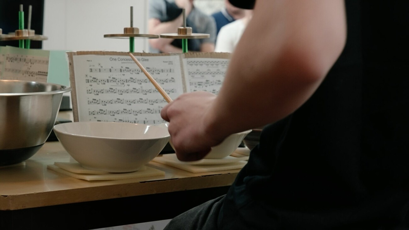 Durant ce concert, aucune batterie, timbale ou marimba ne résonnera dans les allées du magasin, mais des percussions sur des pièces de marbre, des bols, des tubes en acier…