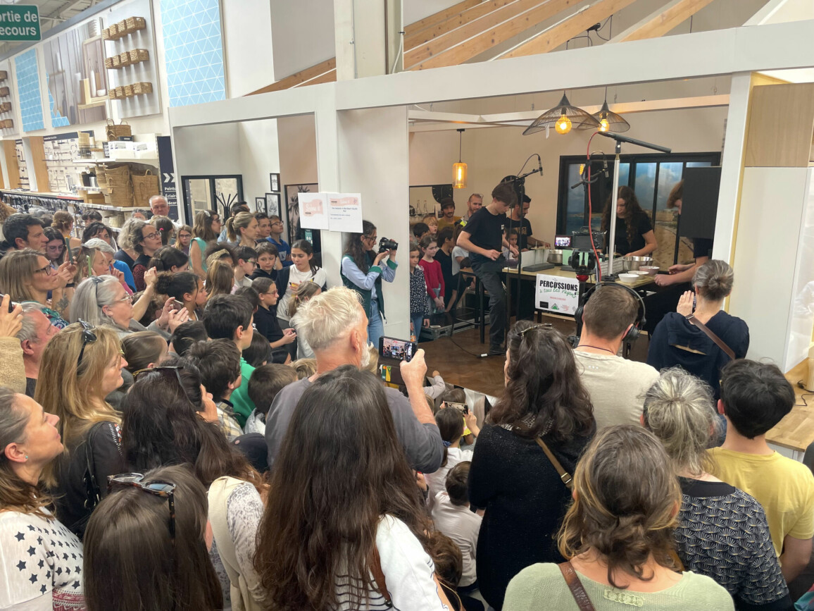 80 percussionnistes du Conservatoire Maurice Ravel Pays Basque ont investi les différents rayons du magasin de l’enseigne Leroy Merlin Bayonne pour offrir au public un spectacle musical unique.
